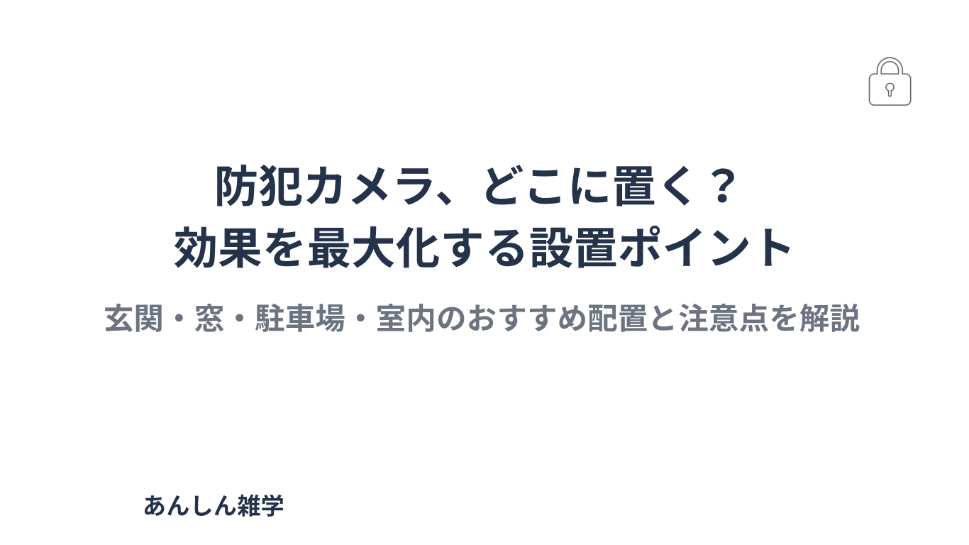 この記事では、家庭・マンション・店舗などで使える効果的な防犯カメラの設置場所5選と、設置の注意点をわかりやすく解説します。