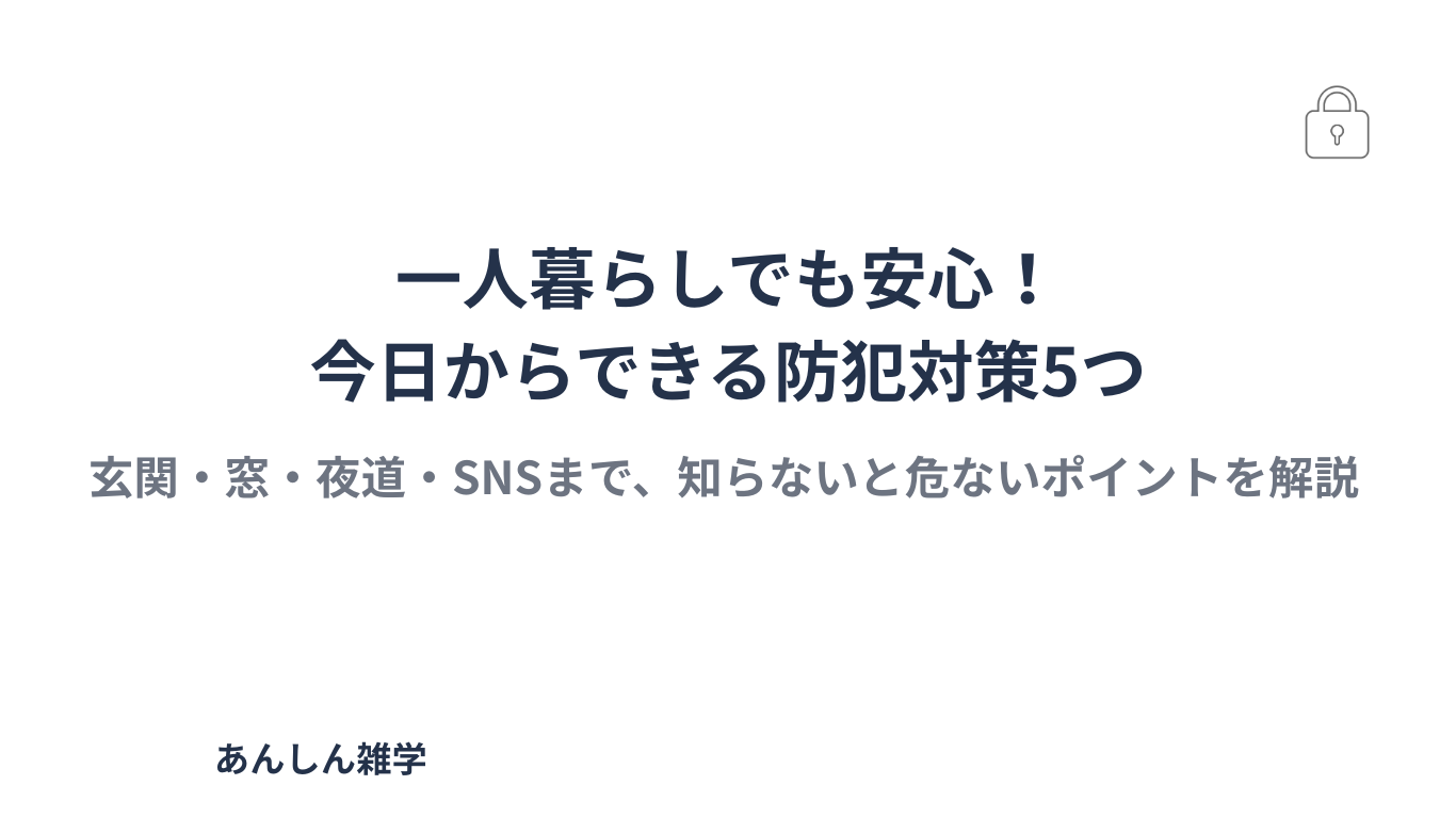 この記事では、一人暮らしの防犯を強化するために知っておきたい5つのポイントをわかりやすく解説します。