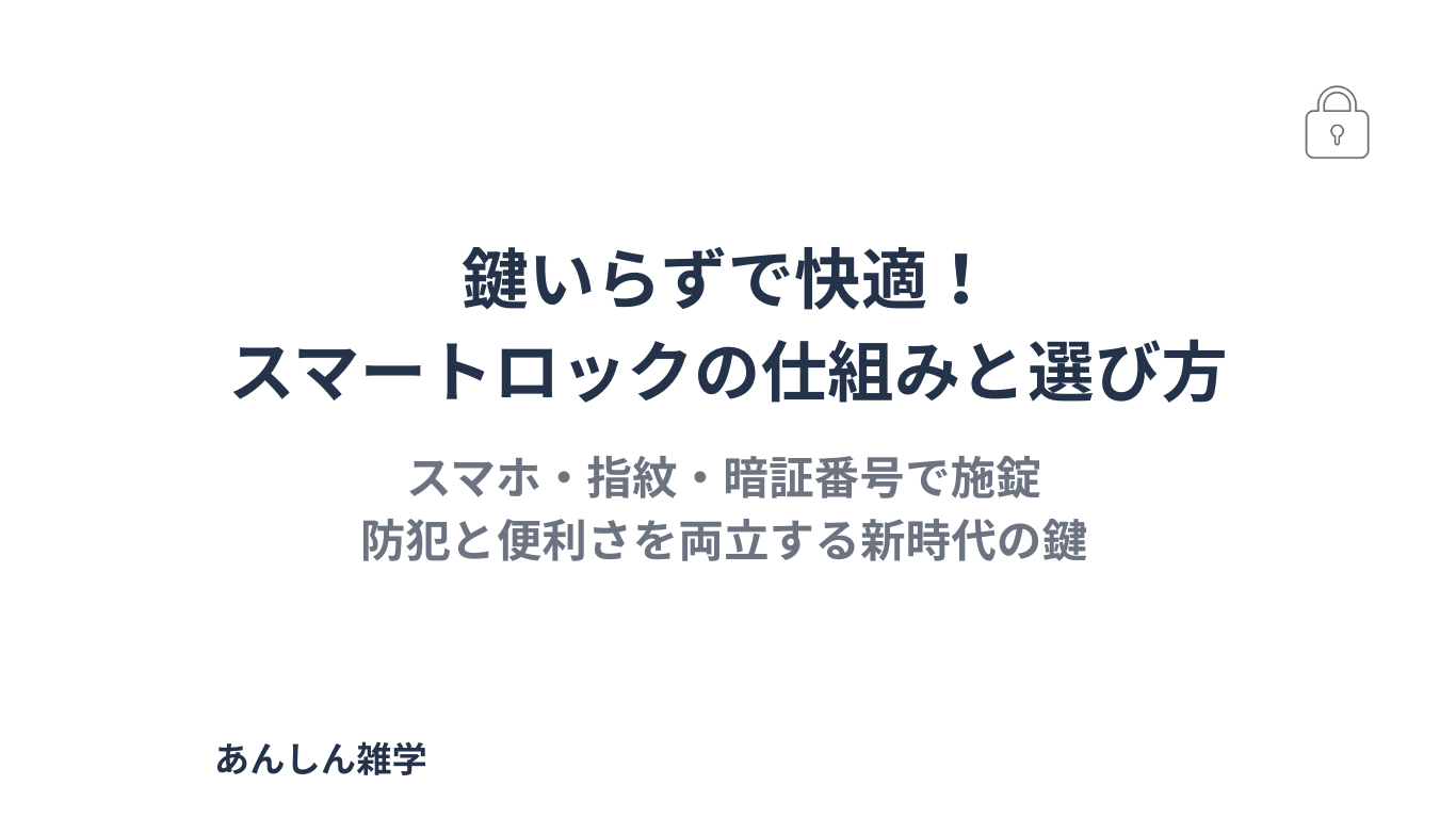 この記事では、スマートロックの仕組み・メリット・デメリットを初心者にも分かりやすく解説します。